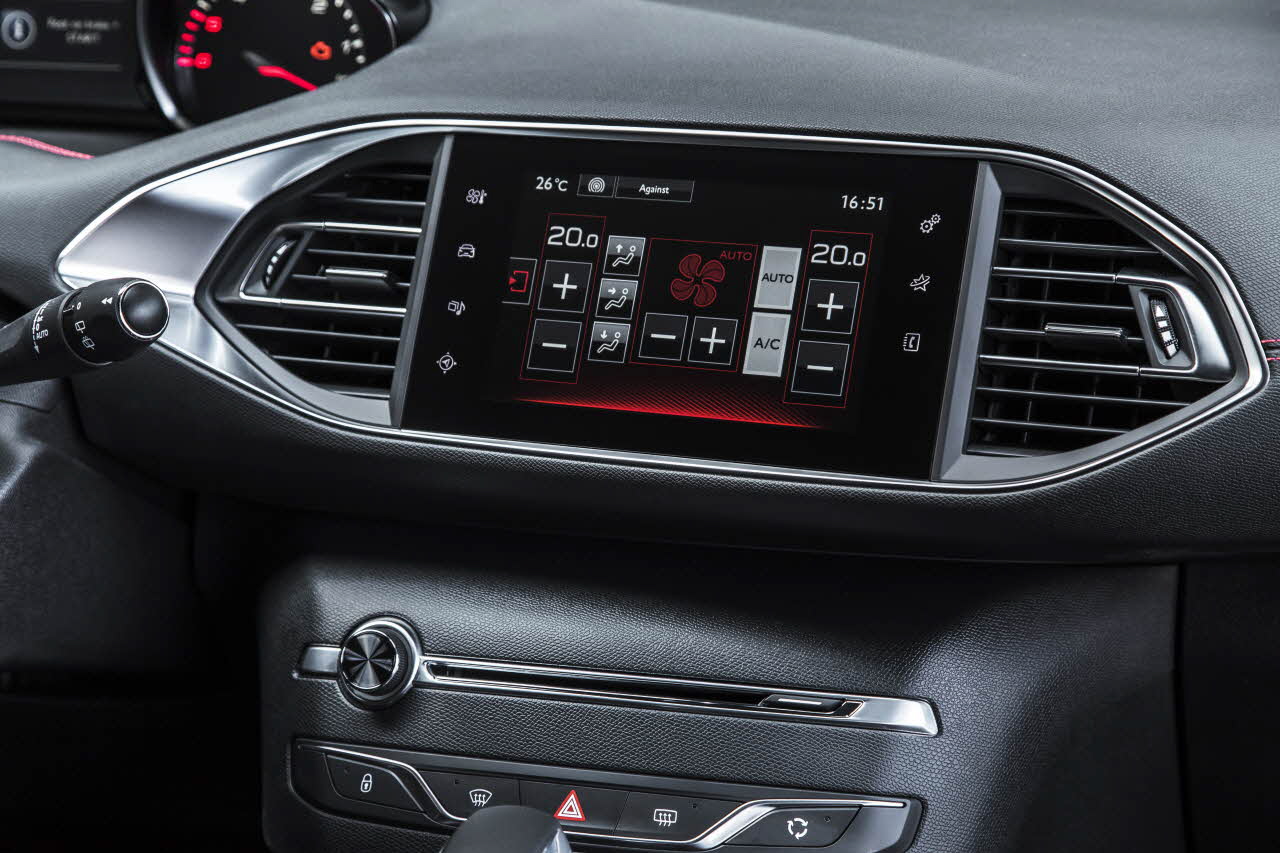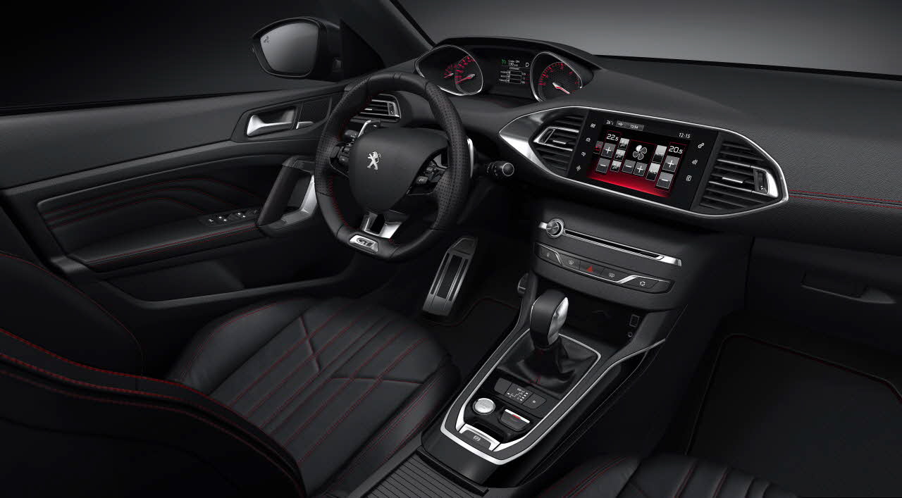 Fundamentalne znaczenie w sportowym samochodzie ma idealna pozycja kierowcy, którą zapewniają ergonomiczne rozwiązania PEUGEOT i-Cockpit. Kierowca może dostosować wysokość i wysunięcie kompaktowej kierownicy, wyróżniającej się perforowanym skórzanym wykończeniem i logotypem GT. Znajdujący się w polu widzenia zespół instrumentów zwraca uwagę nowym tłem z wzorem szachownicy. Po przekręceniu zapłonu, pojawia się komunikat powitalny GT, a duży ekran dotykowy prezentuje nowy interfejs Redline utrzymany w tonacji czerwono-czarnej.
